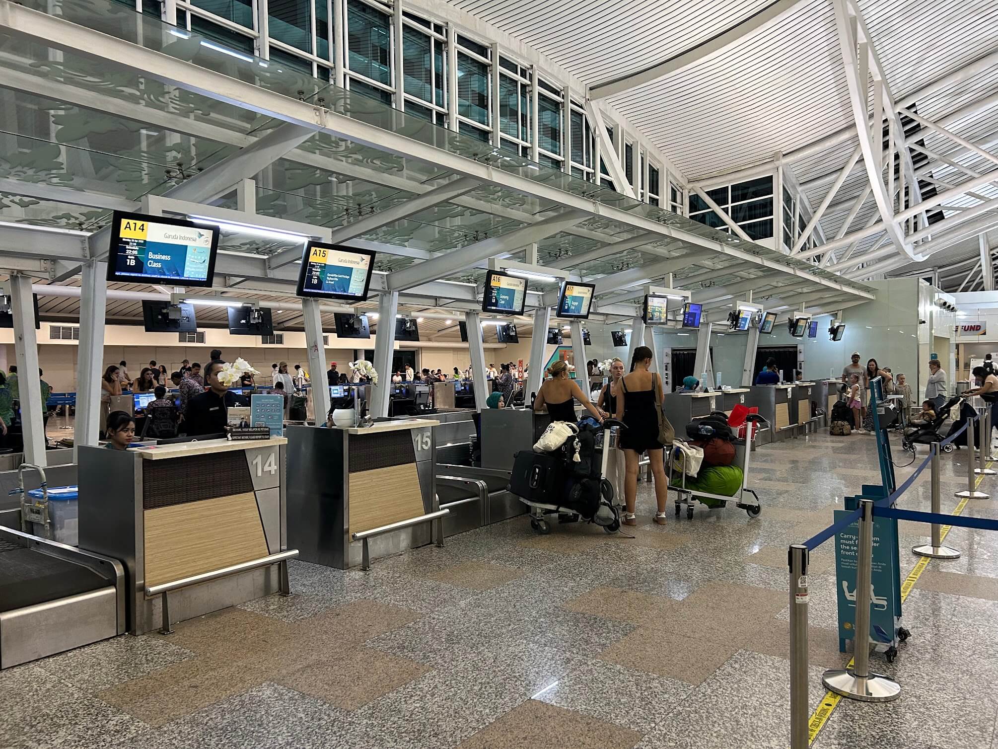 Ik arriveer rond 21:00 op de luchthaven van Denpasar – verkeer staat vaak vast, dus vertrek op tijd. De meeste vluchten vanavond gaan down-under en het barst hier van de Aussies.