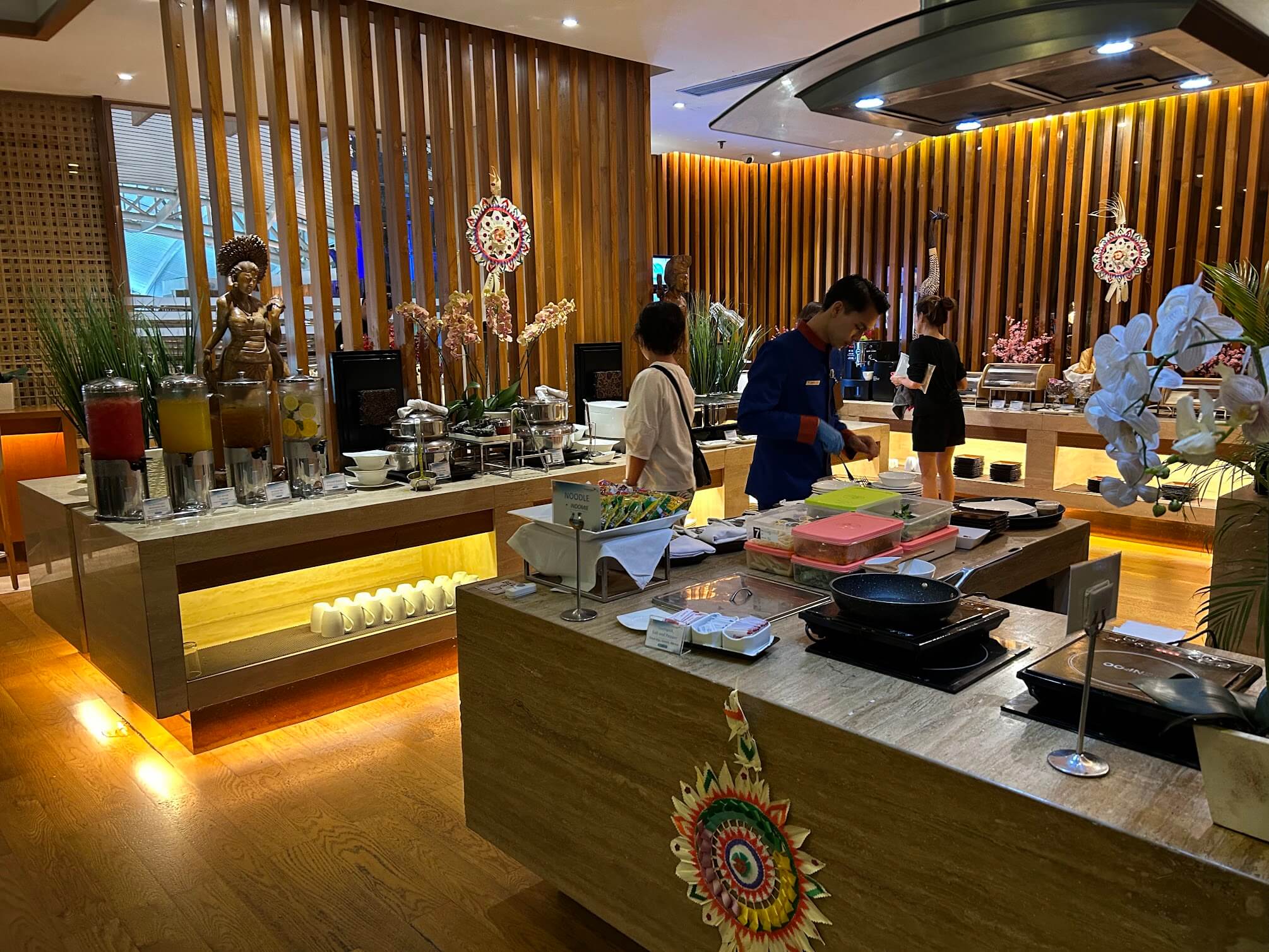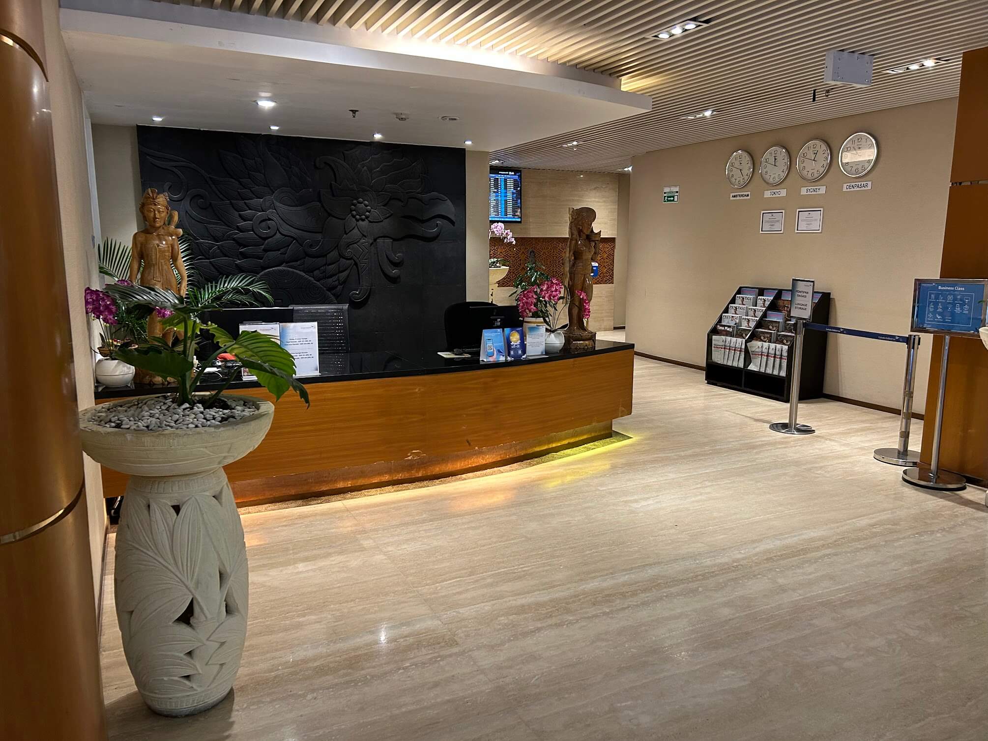 De lounge vind je op de 1e etage na de duty free. Hij is aan de kleine kant en relatief druk. Er is een klein buffet met okay uitziend eten – ik heb net nog nasi campur achter de kiezen dus maak er verder geen gebruik van. In de badkamer is een douche – zeer welkom, want ik kom net van het strand. Hij ziet er echter niet erg verzorgd uit en lijkt niet frequent te worden schoongemaakt tussen gebruik.